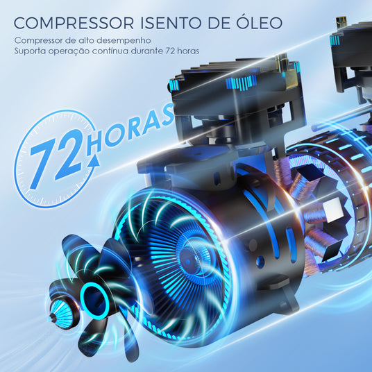 O compressor de cobre sem óleo consome menos energia e pode funcionar continuamente durante 72 horas. Funciona silenciosamente com um nível sonoro tão baixo como 42 dB, permitindo-lhe dormir tranquilamente enquanto o utiliza durante a noite.