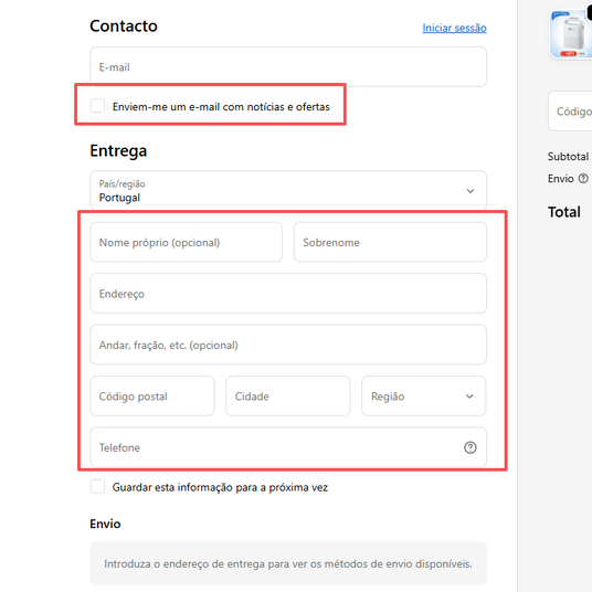 - ✅ Guardar esta informação para a próxima vez – para agilizar futuras compras.