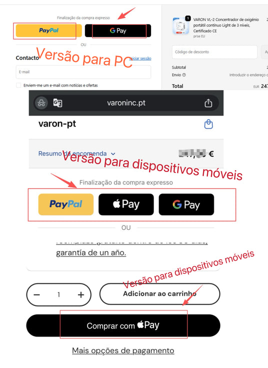 Para uma experiência de checkout ainda mais rápida e segura no seu dispositivo móvel, aceitamos Google Pay e Apple Pay. Estes métodos utilizam os cartões já guardados na sua conta Google ou Apple Wallet, sem necessidade de introduzir manualmente os dados do cartão.